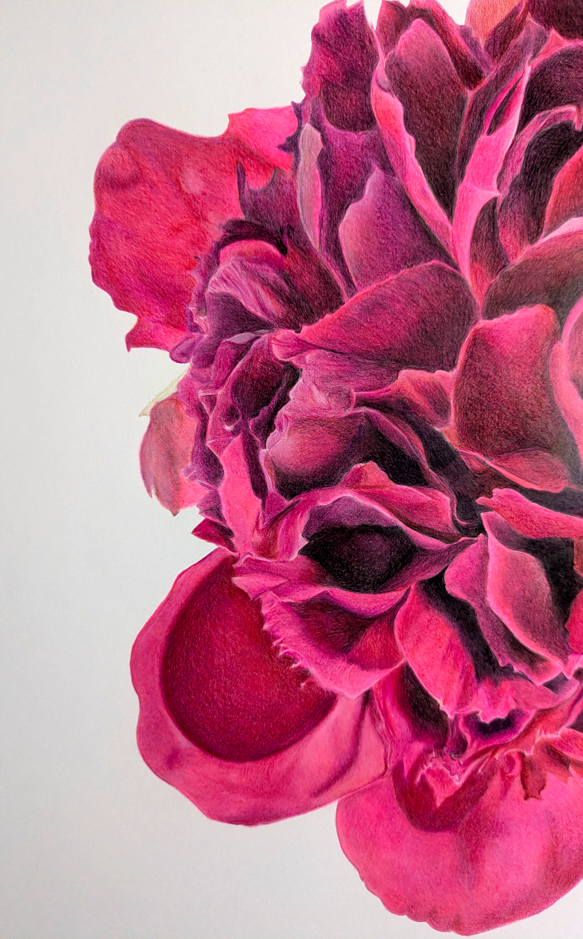 Pink Bloom capture the delicate elegance of a single flower in full blossom - a quite celebration of nature softness, fragility, and strength. Through precise layers of coloured pencils, every petal reveals subtle shades and texture that bring the flower to life.